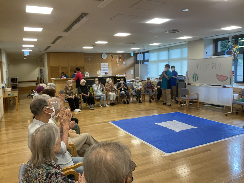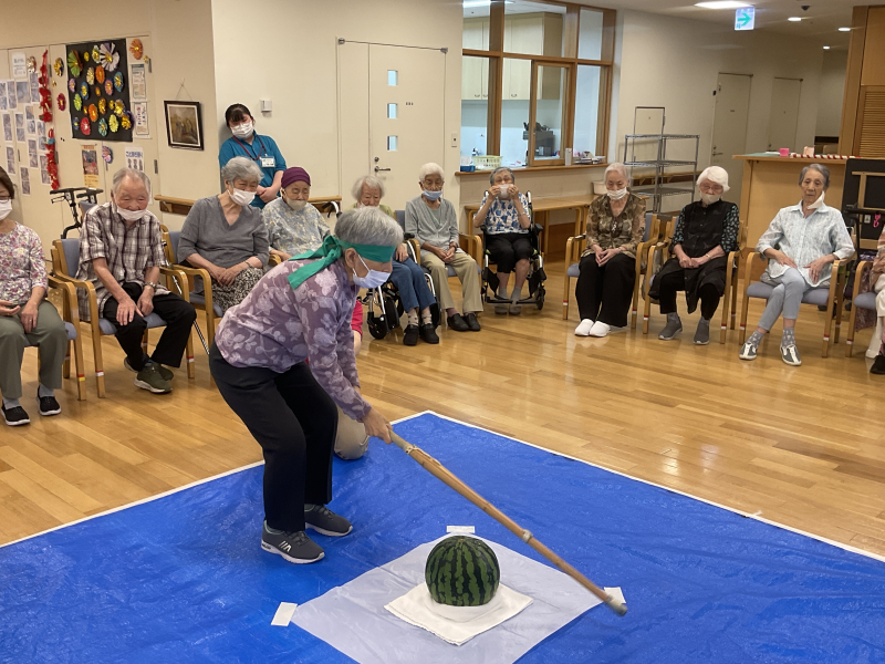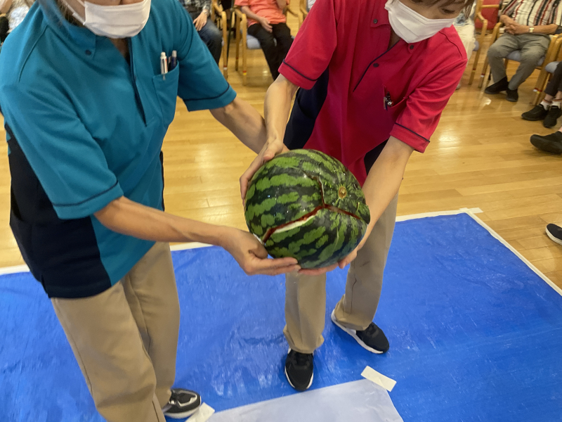 見事に割れたスイカはその場で味わい、甘くてみずみずしい味に「夏を感じるね」「今年初のすいか、美味しい!」と笑顔が広がりました。暑さも吹き飛ぶ楽しいひとときとなり、夏の思い出がまた一つ増えました。
