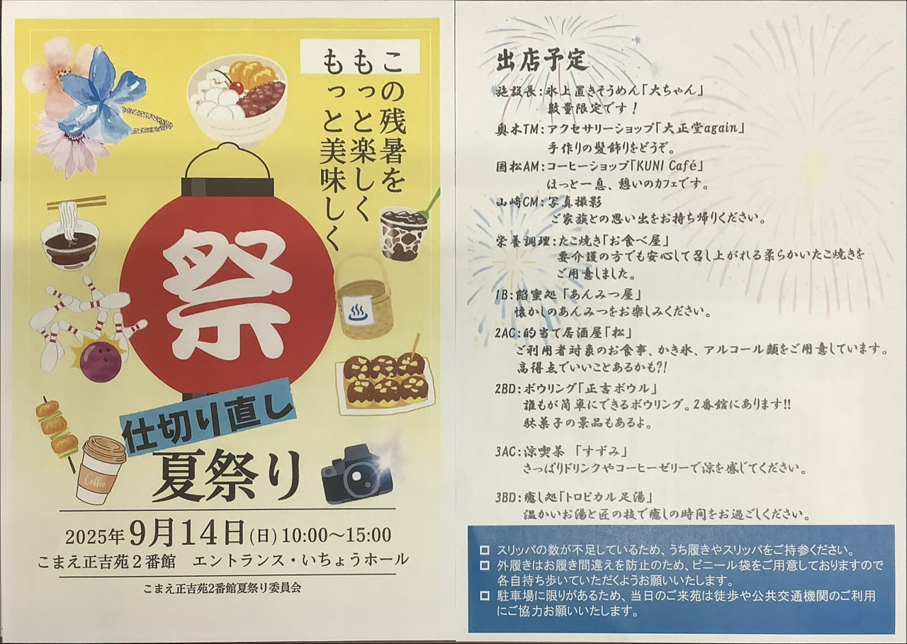令和7年9月14日(日)敬老祝賀会に代わり、コロナ感染症発生により延期していた夏まつりを開催しました。(当初予定は7月27日(日))