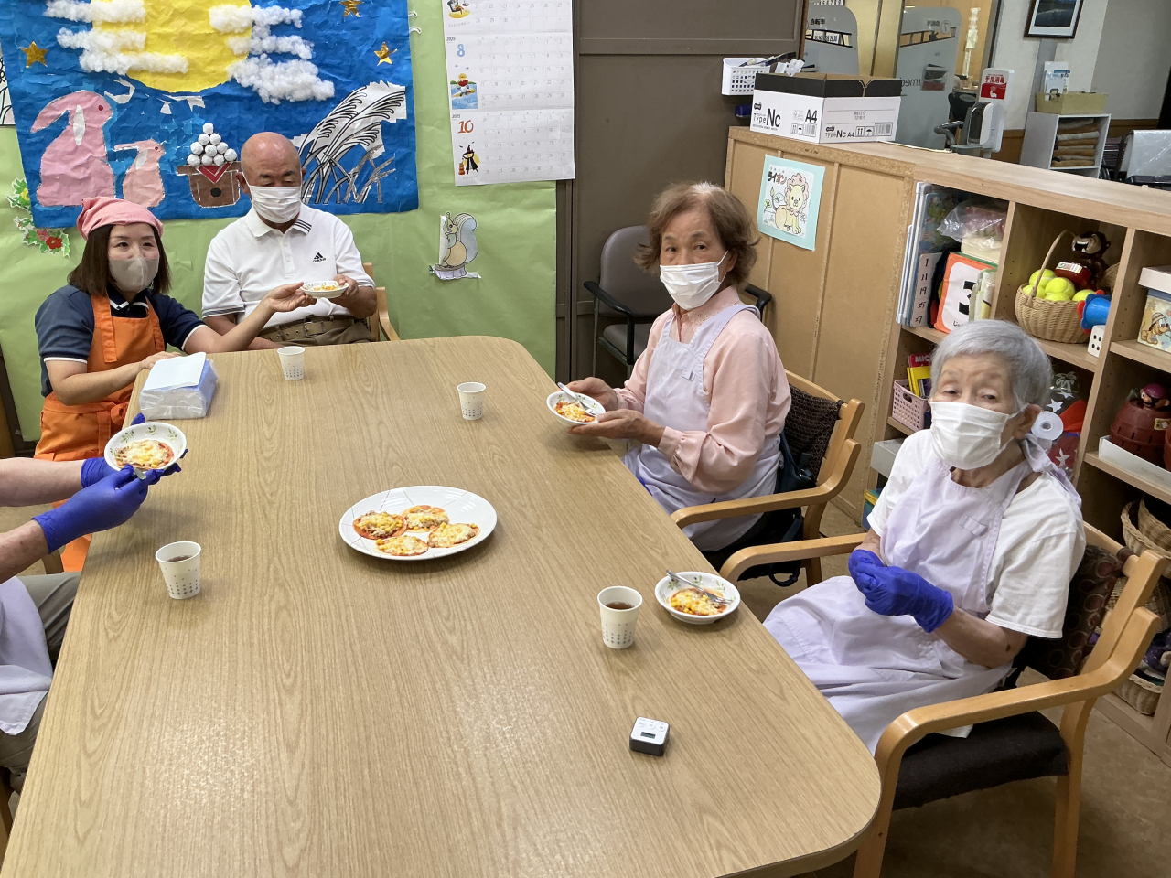 普段とは違うご利用者の様子を見ることができ、自分たちの作ったものをみんなで食べることが笑顔につながっています。 今後も毎月実施できるように企画していきますのでお楽しみに!