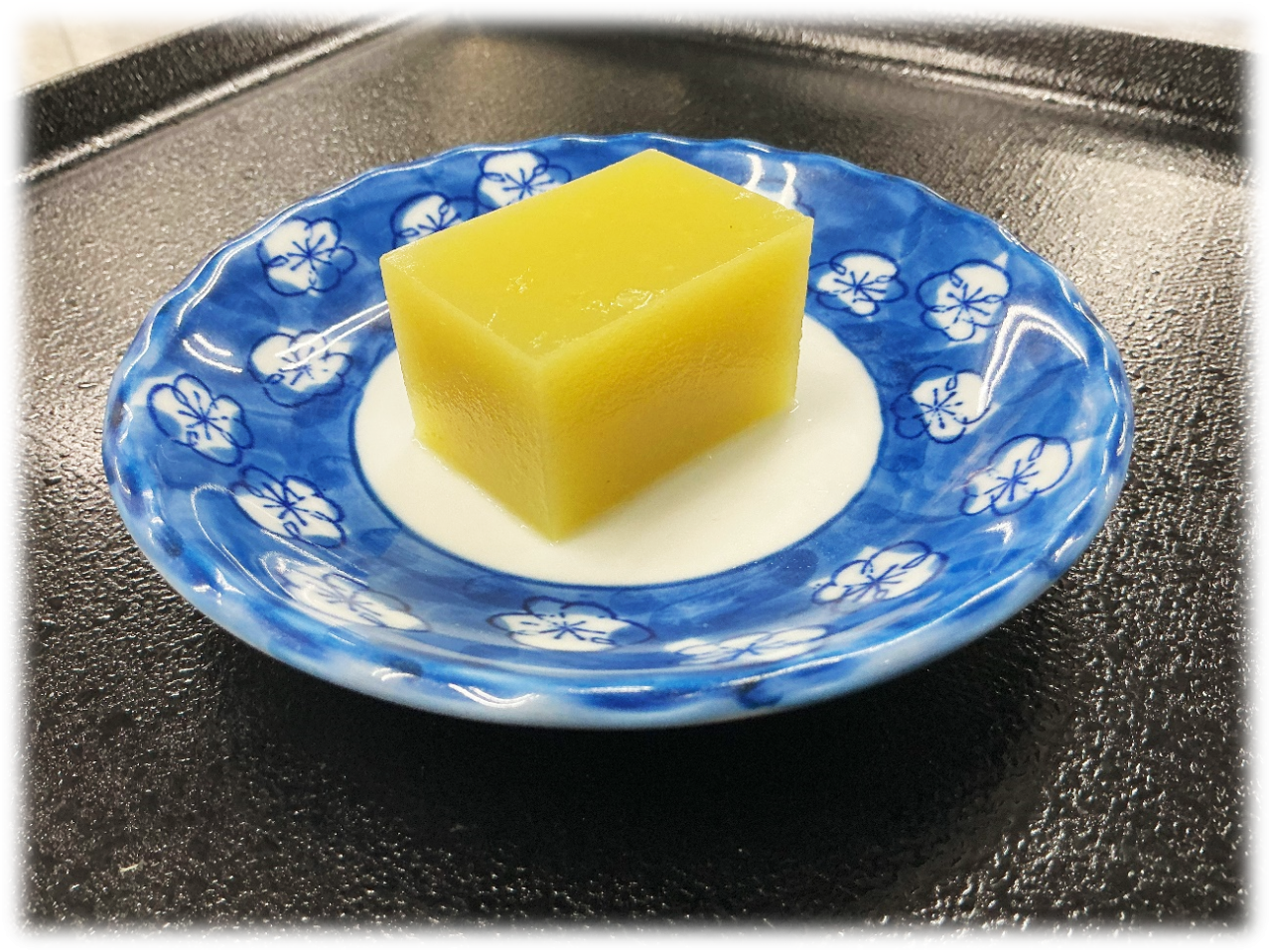 秋らしいサツマイモを使った羊羹は、なめらかな舌触りと程よい甘さで、