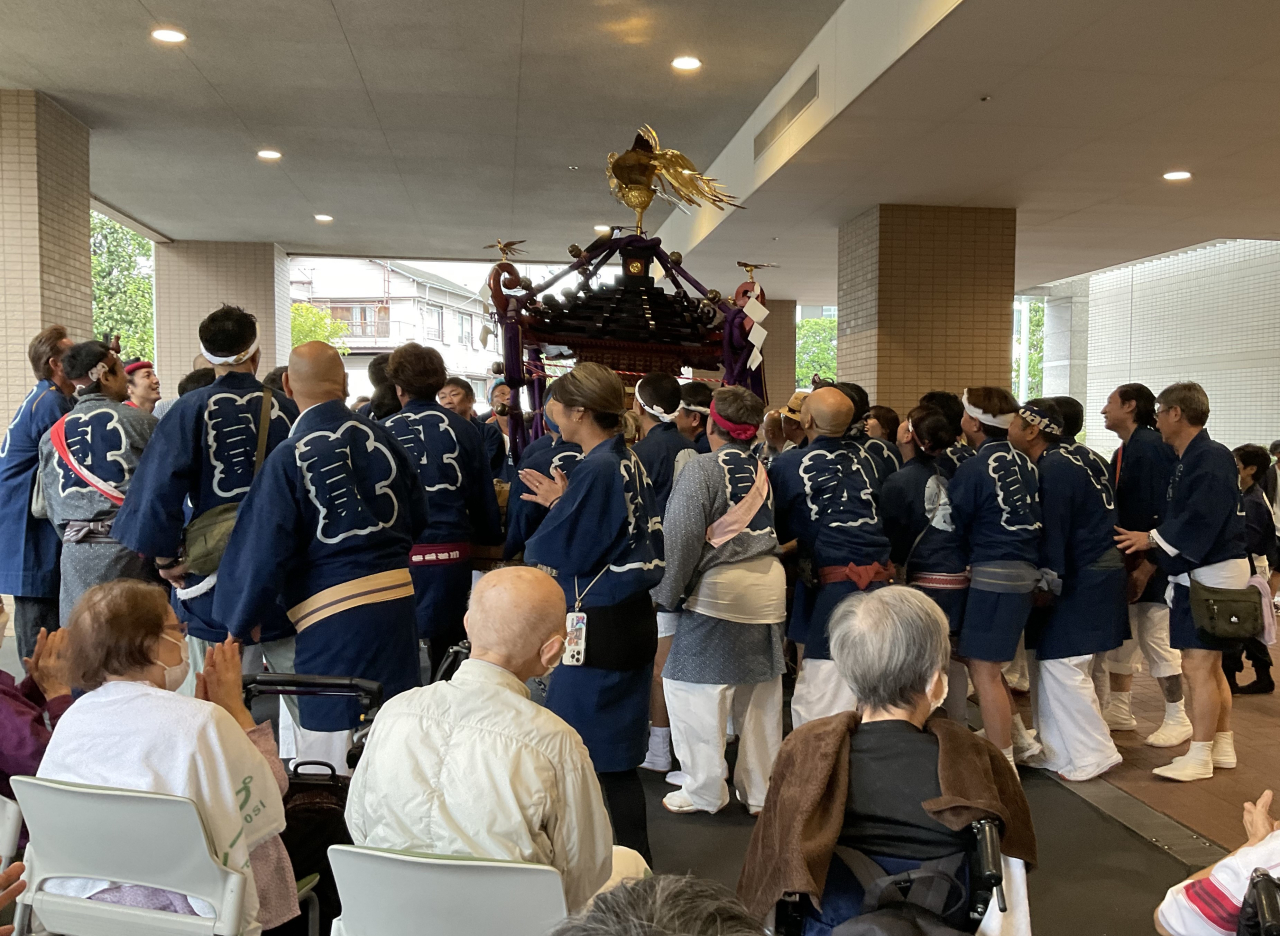 今年も上原一丁目睦の大神輿に渡御していただき、ご利用者さまにお披露目いただきました。