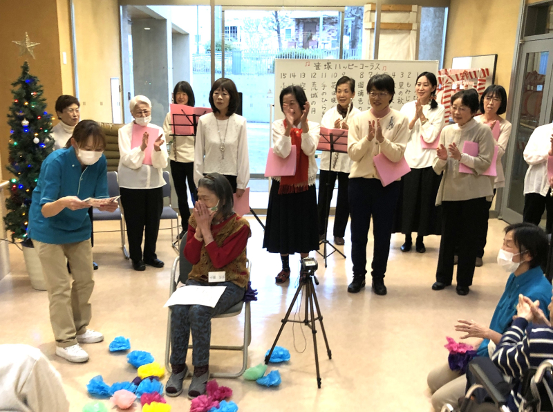 続いては「もみじ」や「ふるさと」といった懐かしい曲を、クリスマスソングと交えながら皆で合唱。