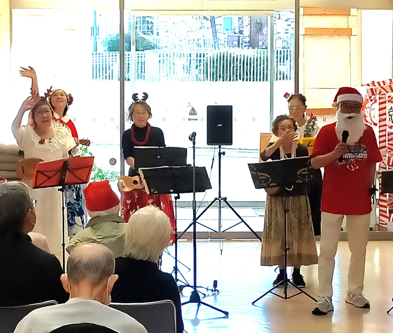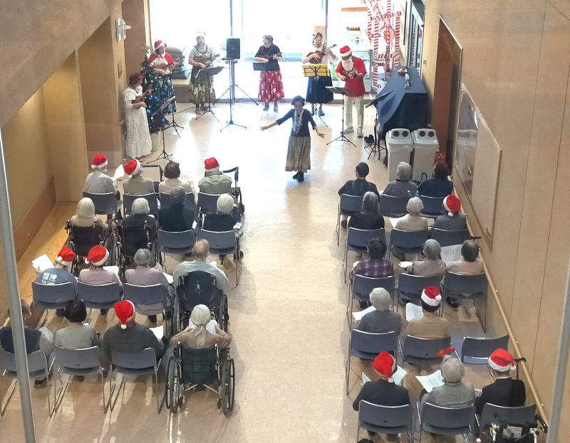 「きよしこの夜」や「ジングルベル」など、誰もが口ずさめるクリスマスソングを一緒に合唱し、ご利用者の皆さまも自然と笑顔に。