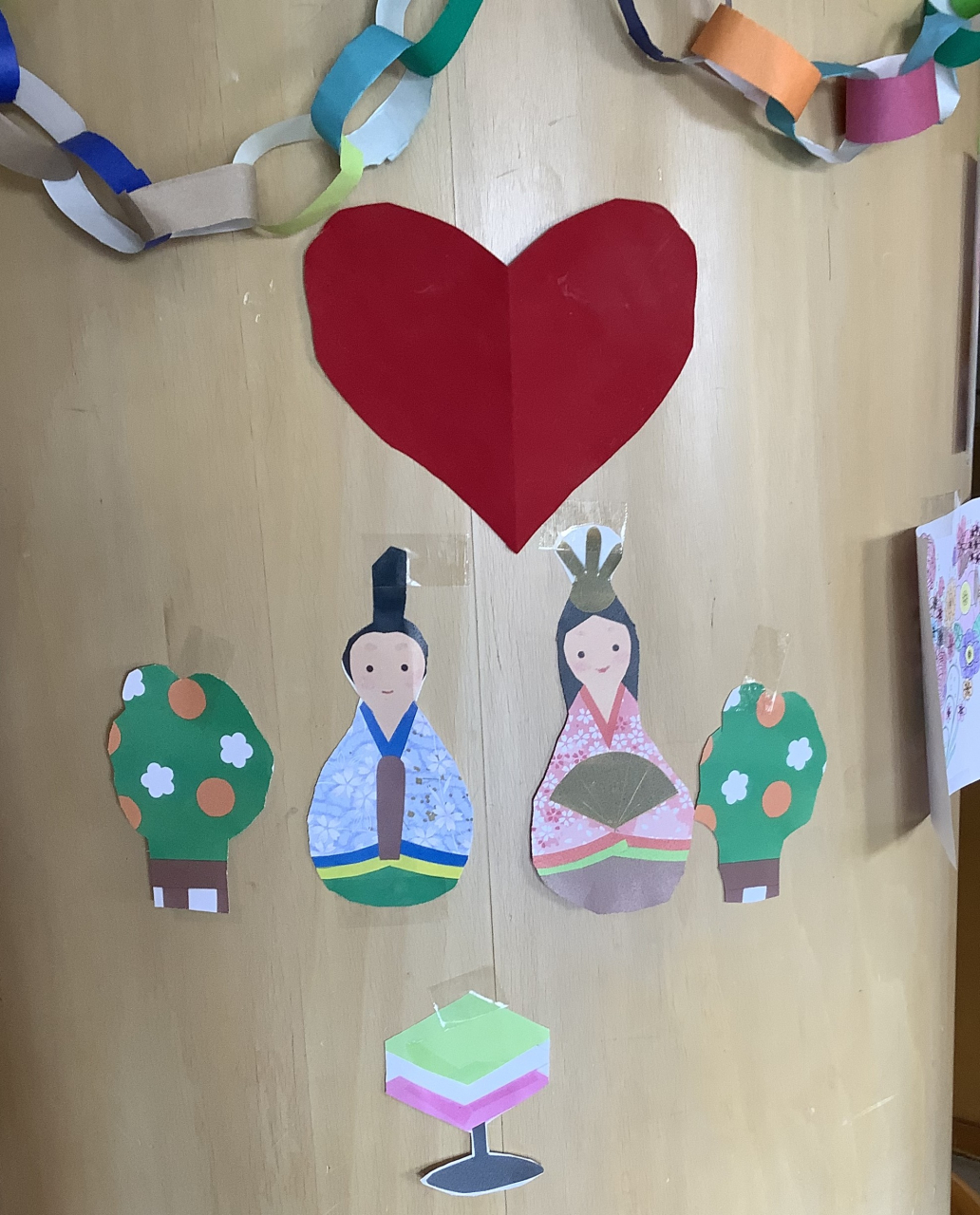 ひな祭りに向けてご利用者のみなさんと一緒に飾り付けを行いました。
