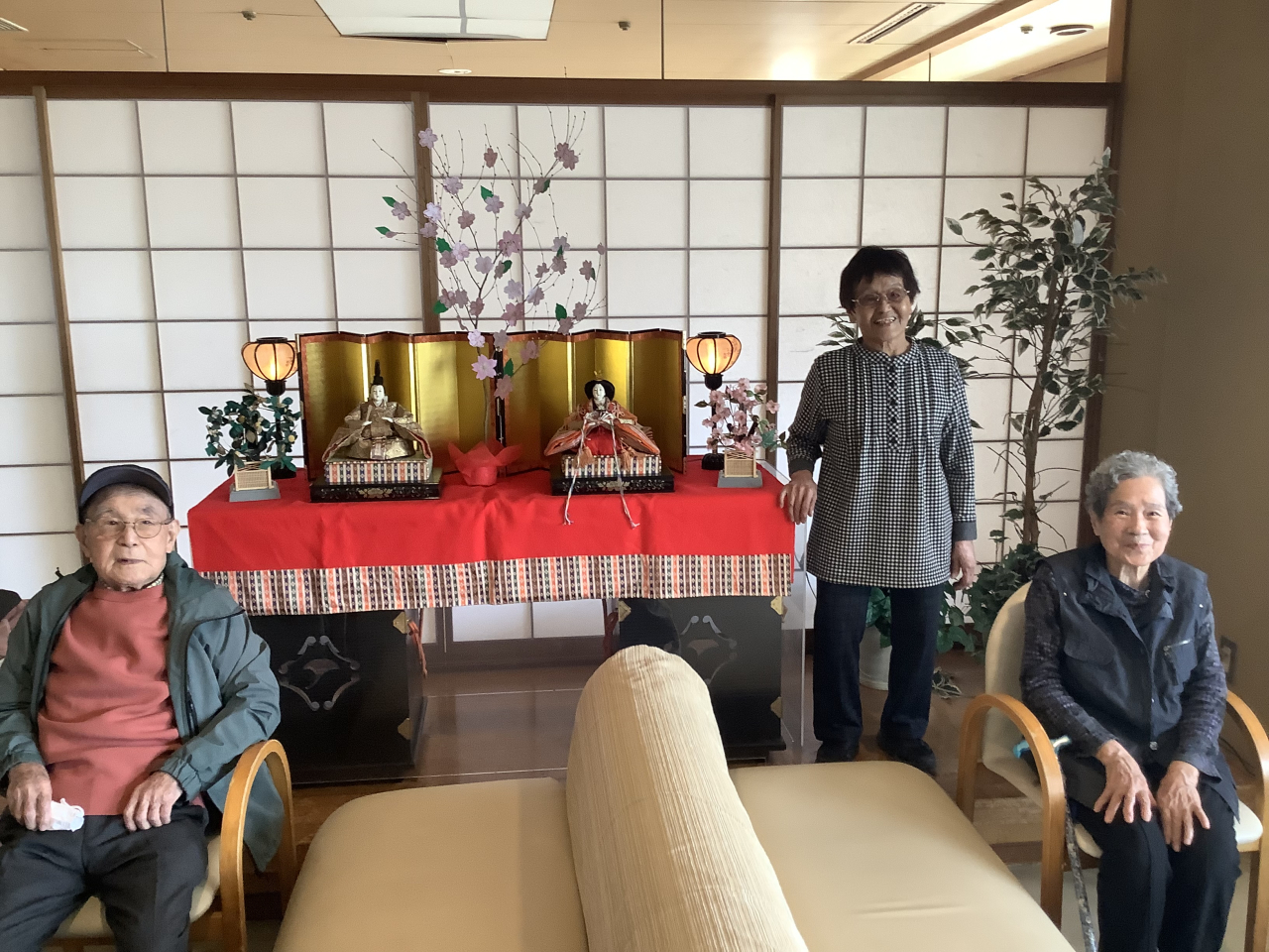ひなまつりの飾り付けと記念写真