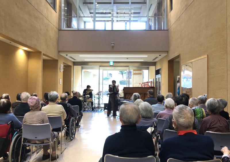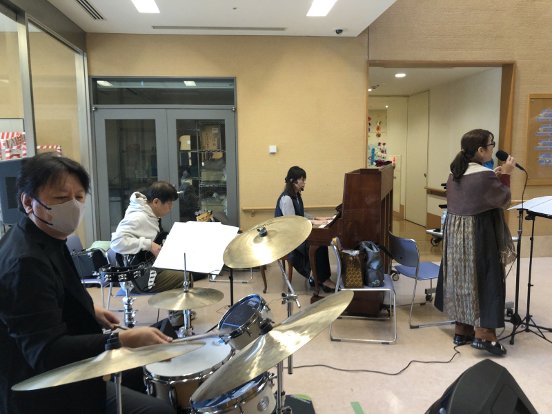 11月12日の午後、きたざわ苑の吹き抜けホールがライブハウスに大変身!