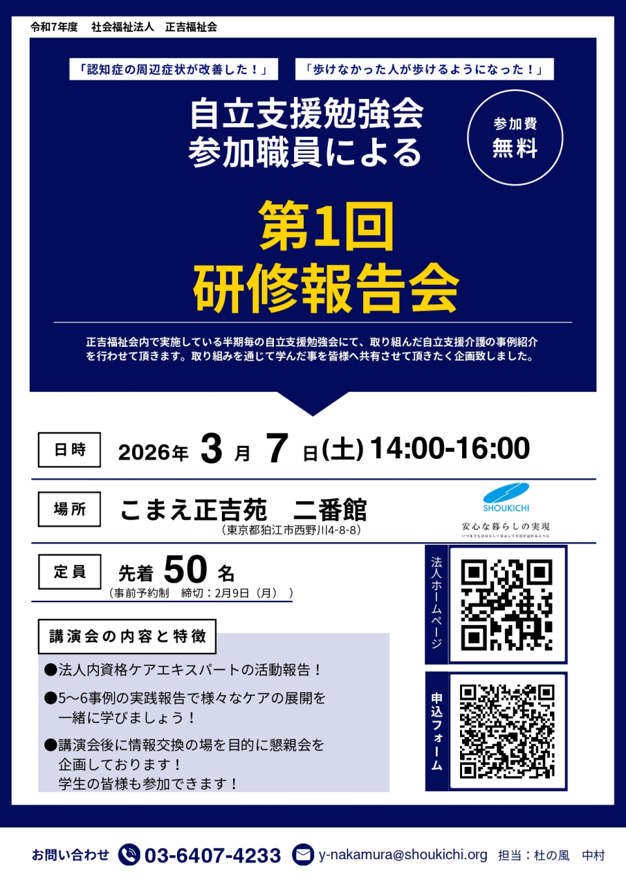 当会独自の資格である「ケアエキスパート」が中心となり、ご利用者の自立を支援する介護に関する事例発表会を開催します。