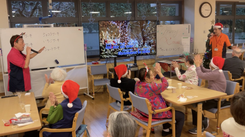 クリスマス会の締めは、職員2人によるクリスマスソングの披露。