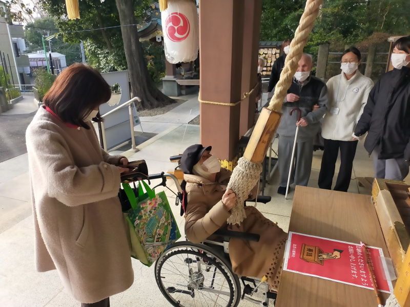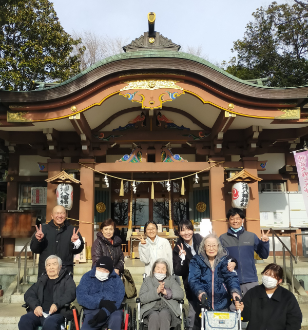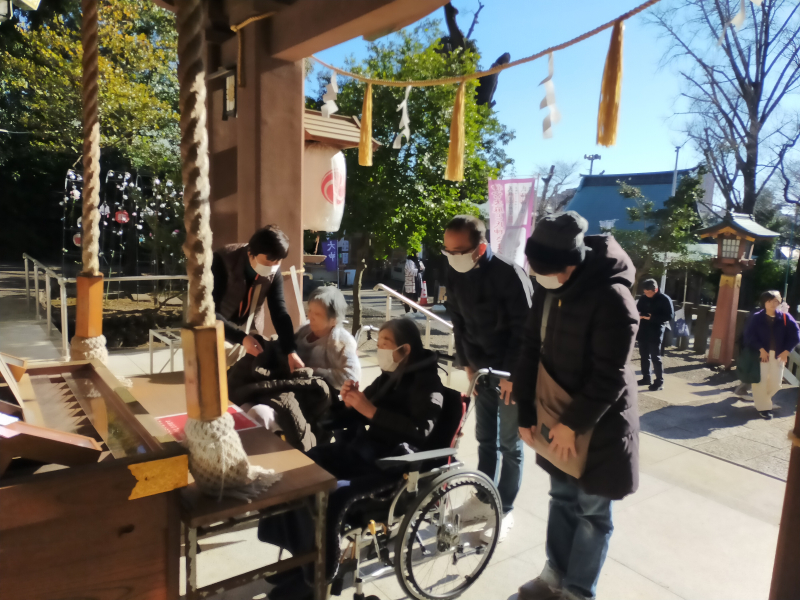 1月12日から16日までの5日間、きたざわ苑では「初詣ウィーク」として、ご希望された皆さまとご家族の方々で氏神様・北澤八幡宮へお参りに出かけました。