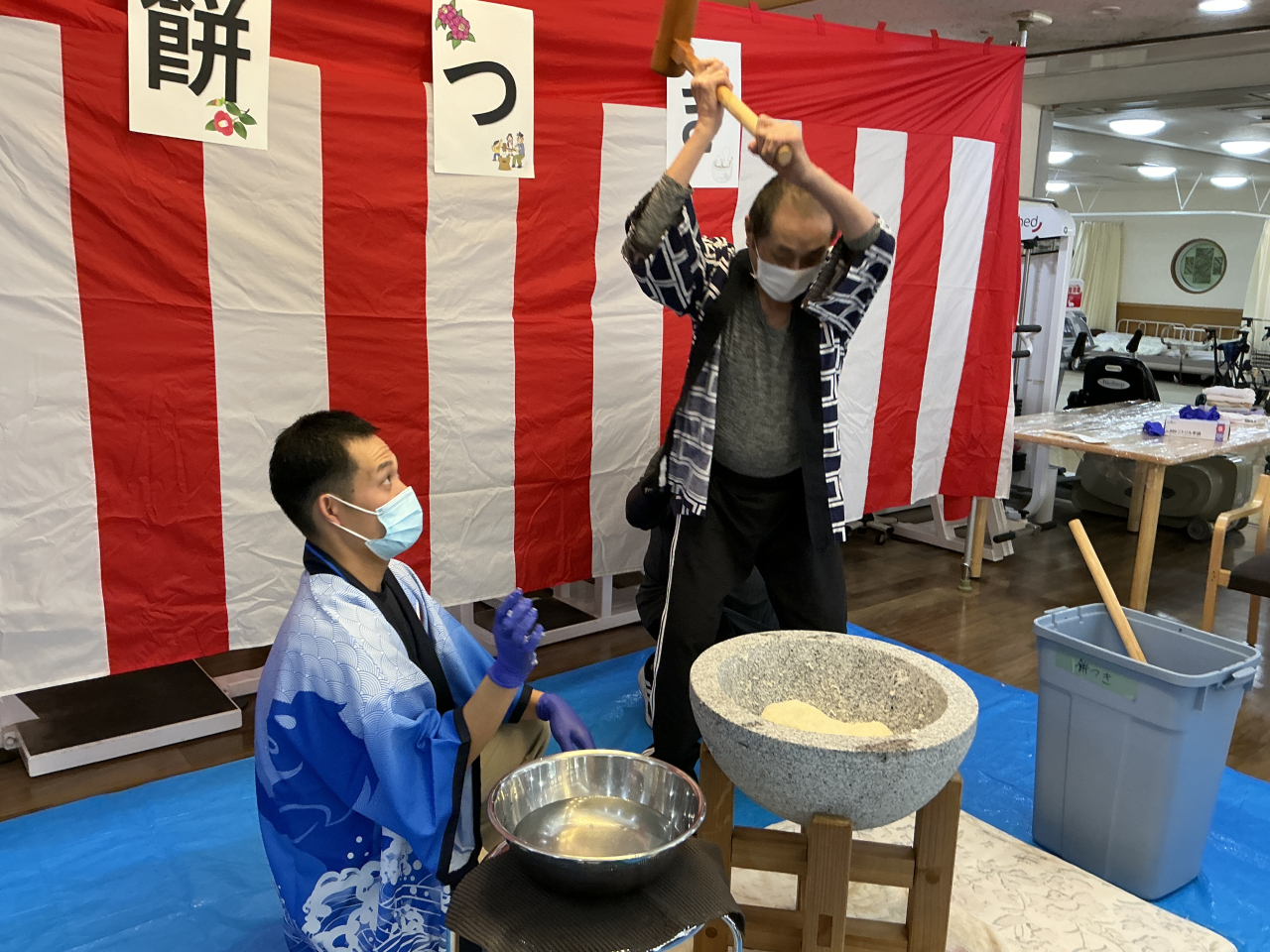 餅つきの知識が足りず、職員やご利用者にアドバイスをいただきながら準備・本番・片付けとなんとか行うことができました。